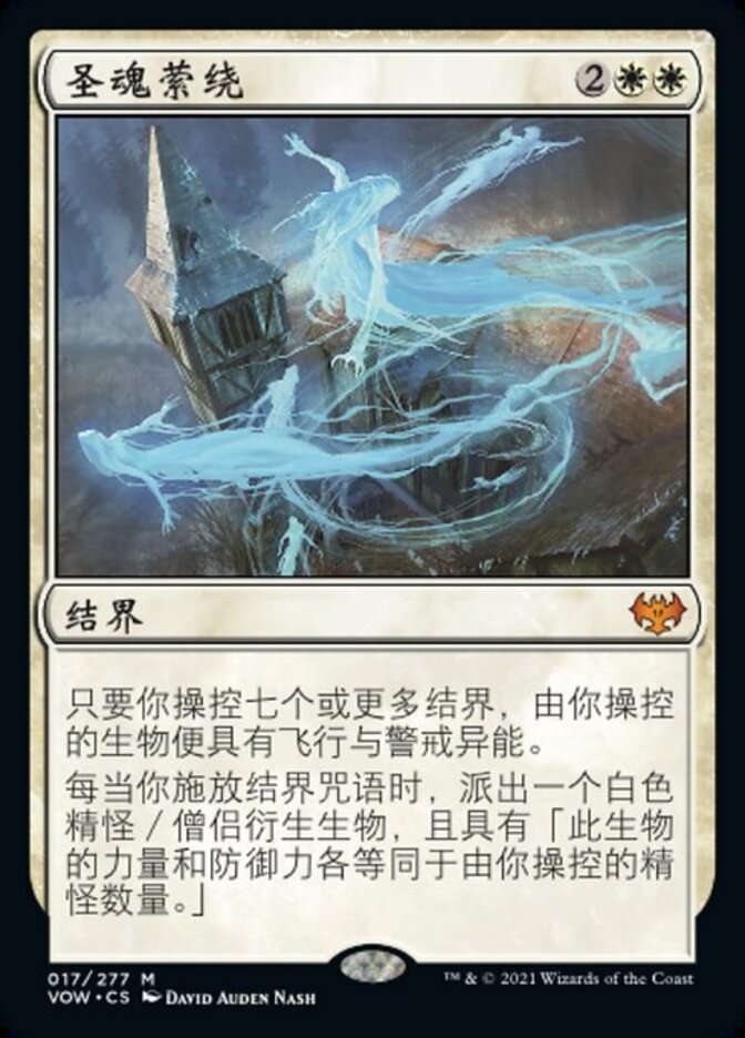 | Rules | As long as you control seven or more enchantments, creatures you control have flying and vigilance. Whenever you cast an enchantment spell, create a white Spirit Cleric creature token with "This creature's power and toughness are each equal to the number of Spirits you control." |