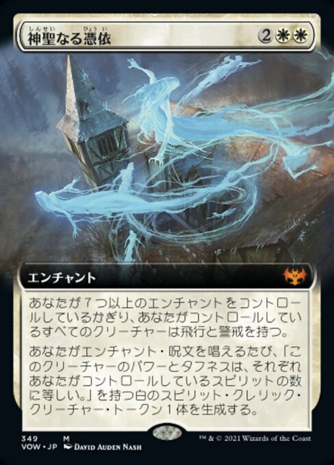 | Rules | As long as you control seven or more enchantments, creatures you control have flying and vigilance. Whenever you cast an enchantment spell, create a white Spirit Cleric creature token with "This creature's power and toughness are each equal to the number of Spirits you control." |