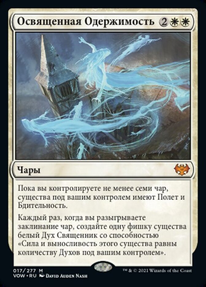 | Rules | As long as you control seven or more enchantments, creatures you control have flying and vigilance. Whenever you cast an enchantment spell, create a white Spirit Cleric creature token with "This creature's power and toughness are each equal to the number of Spirits you control." |