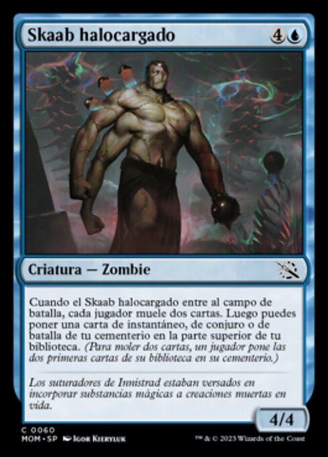 | Rules | When Halo-Charged Skaab enters the battlefield, each player mills two cards. Then you may put an instant, sorcery, or battle card from your graveyard on top of your library. (To mill two cards, a player puts the top two cards of their library into their graveyard.) |