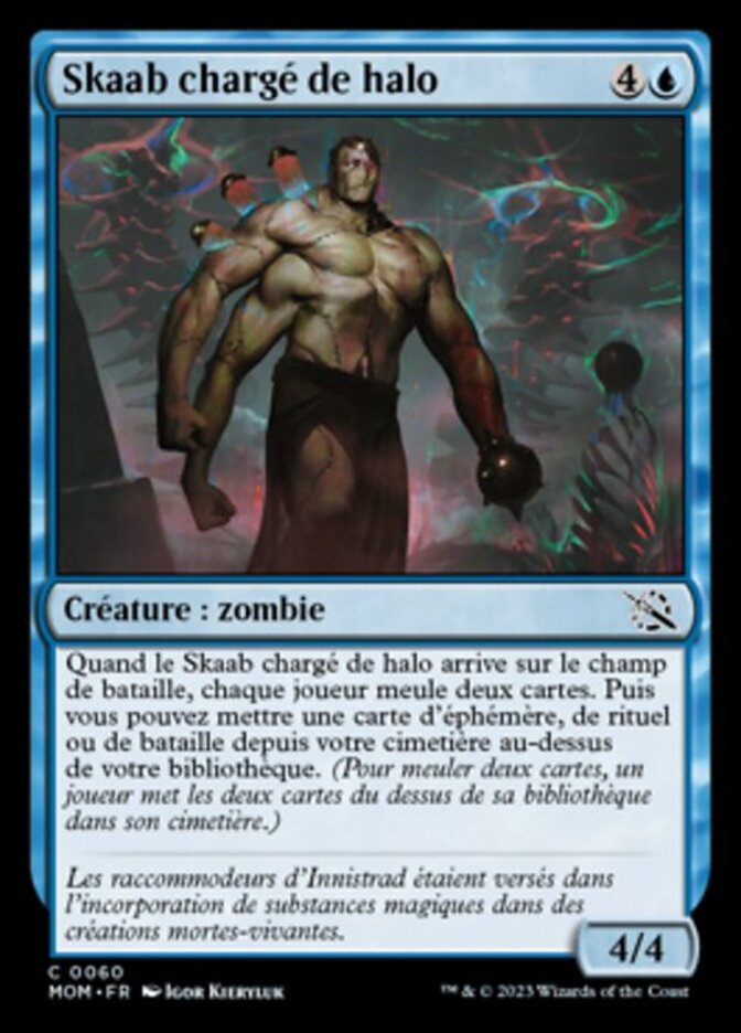 | Rules | When Halo-Charged Skaab enters the battlefield, each player mills two cards. Then you may put an instant, sorcery, or battle card from your graveyard on top of your library. (To mill two cards, a player puts the top two cards of their library into their graveyard.) |