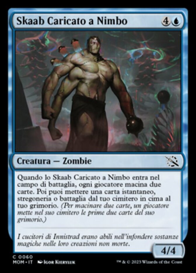 | Rules | When Halo-Charged Skaab enters the battlefield, each player mills two cards. Then you may put an instant, sorcery, or battle card from your graveyard on top of your library. (To mill two cards, a player puts the top two cards of their library into their graveyard.) |