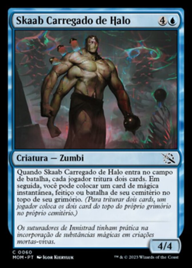 | Rules | When Halo-Charged Skaab enters the battlefield, each player mills two cards. Then you may put an instant, sorcery, or battle card from your graveyard on top of your library. (To mill two cards, a player puts the top two cards of their library into their graveyard.) |