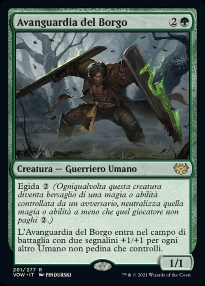 | Rules | Ward (Whenever this creature becomes the target of a spell or ability an opponent controls, counter it unless that player pays .) Hamlet Vanguard enters the battlefield with two +1/+1 counters on it for each other nontoken Human you control. |