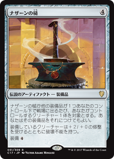 | Rules | Whenever Hammer of Nazahn or another Equipment enters the battlefield under your control, you may attach that Equipment to target creature you control. Equipped creature gets +2/+0 and has indestructible. Equip |