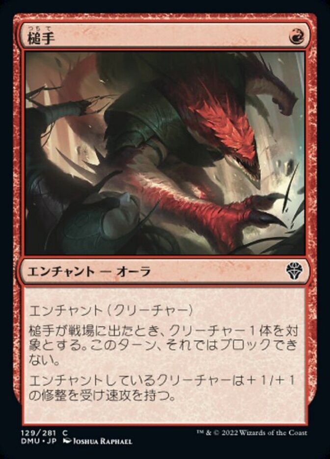 | Rules | Enchant creature When Hammerhand enters the battlefield, target creature can't block this turn. Enchanted creature gets +1/+1 and has haste. (It can attack and no matter when it came under your control.) |