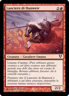 | Rules | Soulbond (You may pair this creature with another unpaired creature when either enters the battlefield. They remain paired for as long as you control both of them.) As long as Hanweir Lancer is paired with another creature, both creatures have first strike. |
