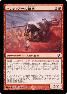 | Rules | Soulbond (You may pair this creature with another unpaired creature when either enters the battlefield. They remain paired for as long as you control both of them.) As long as Hanweir Lancer is paired with another creature, both creatures have first strike. |