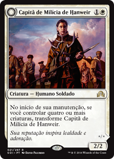 Rules At the beginning of your upkeep, if you control four or more creatures, transform Hanweir Militia Captain.