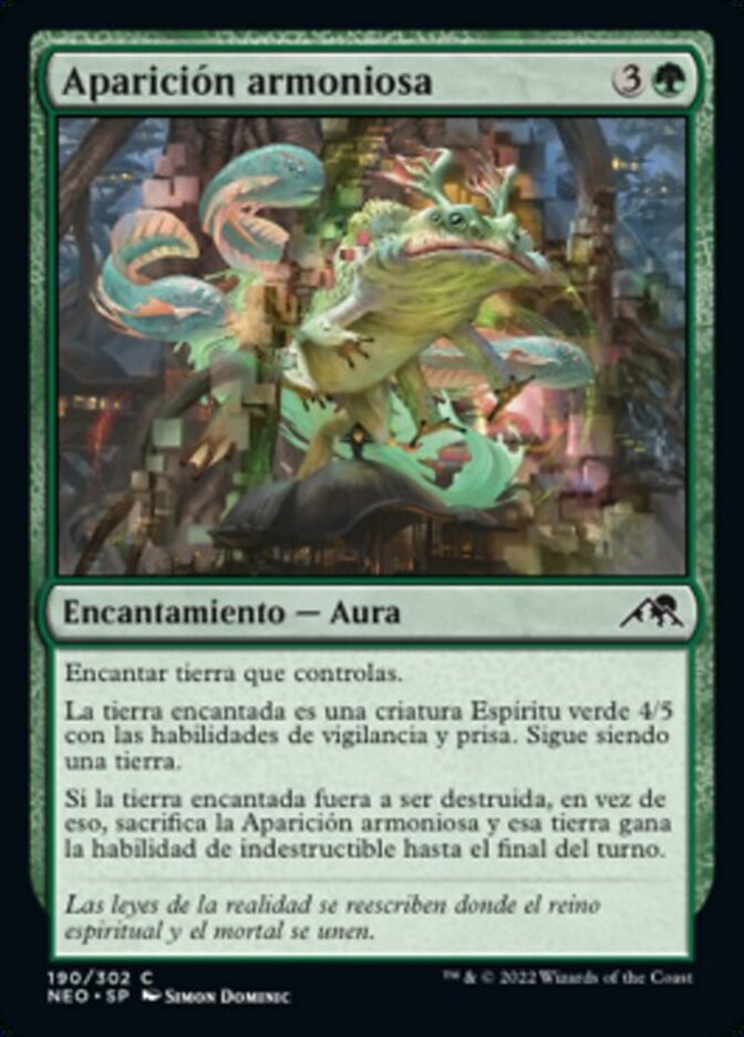 | Rules | Enchant land you control Enchanted land is a 4/5 green Spirit creature with vigilance and haste. It's still a land. If enchanted land would be destroyed, instead sacrifice Harmonious Emergence and that land gains indestructible until end of turn. |