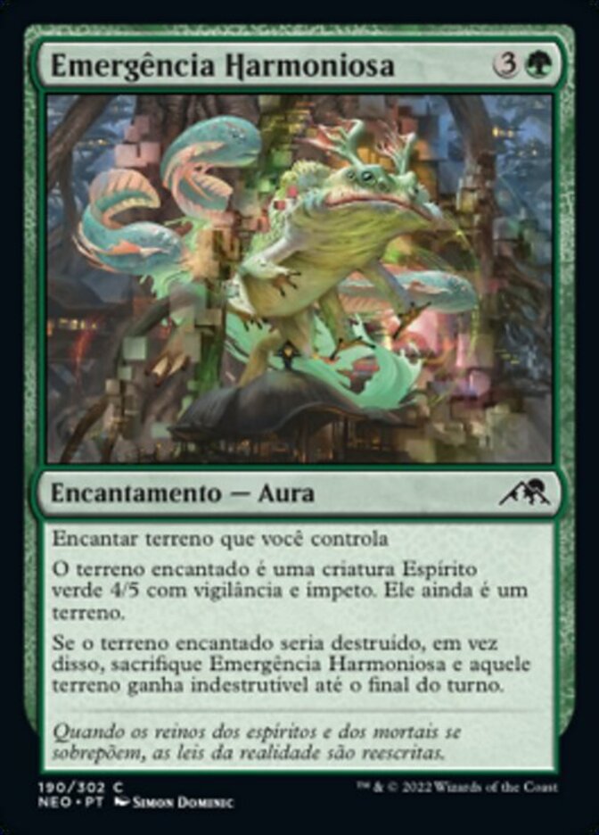 | Rules | Enchant land you control Enchanted land is a 4/5 green Spirit creature with vigilance and haste. It's still a land. If enchanted land would be destroyed, instead sacrifice Harmonious Emergence and that land gains indestructible until end of turn. |