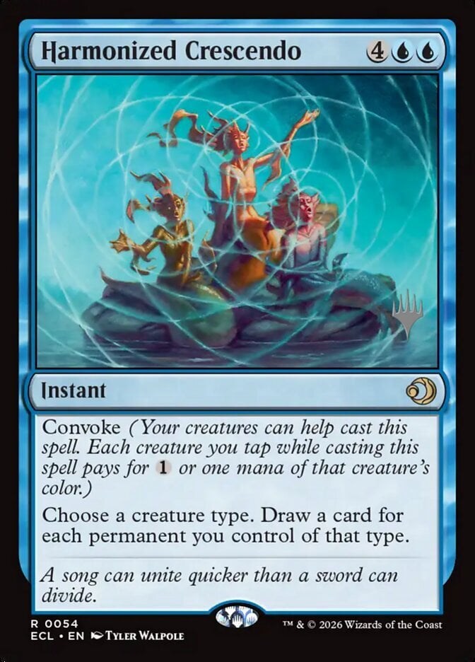 | Rules | Convoke (Your creatures can help cast this spell. Each creature you tap while casting this spell pays for or one mana of that creature's color.) Choose a creature type. Draw a card for each permanent you control of that type. |
