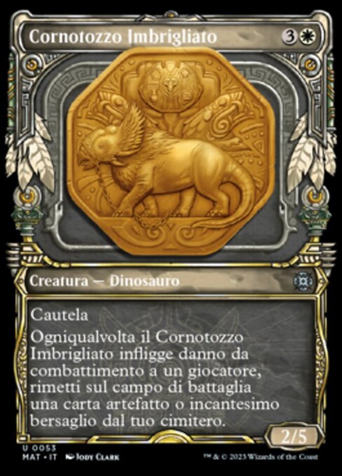 | Rules | Vigilance Whenever Harnessed Snubhorn deals combat damage to a player, return target artifact or enchantment card from your graveyard to the battlefield. |