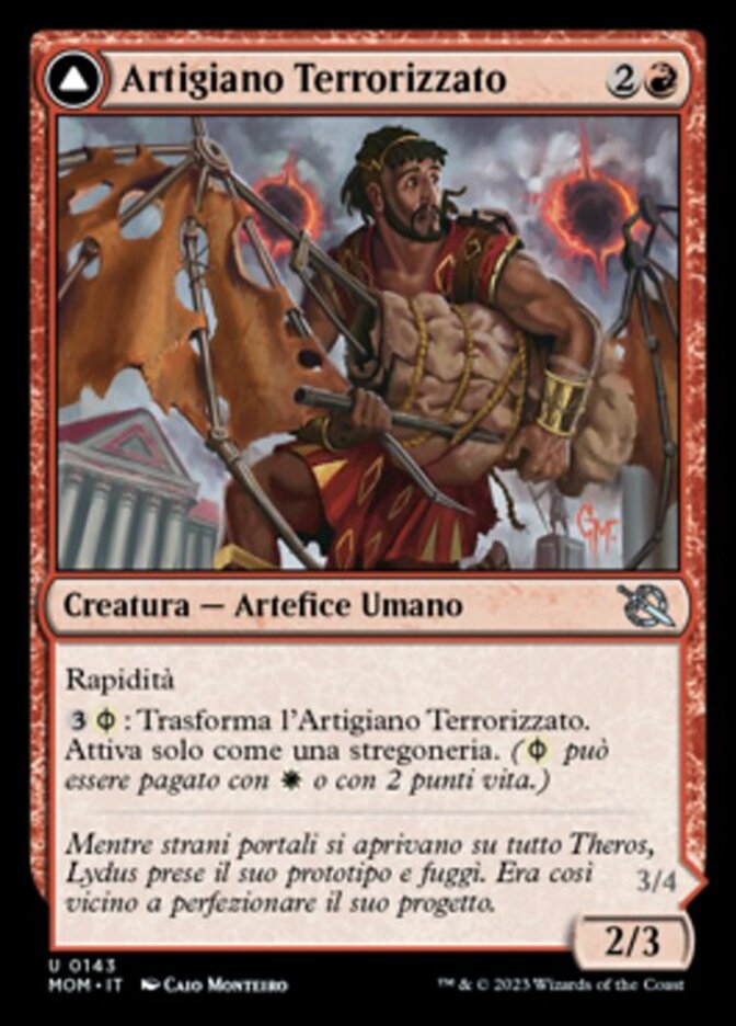 | Rules | Haste : Transform Harried Artisan. Activate only as a sorcery. ( can be paid with either or 2 life.) // Flying, haste |