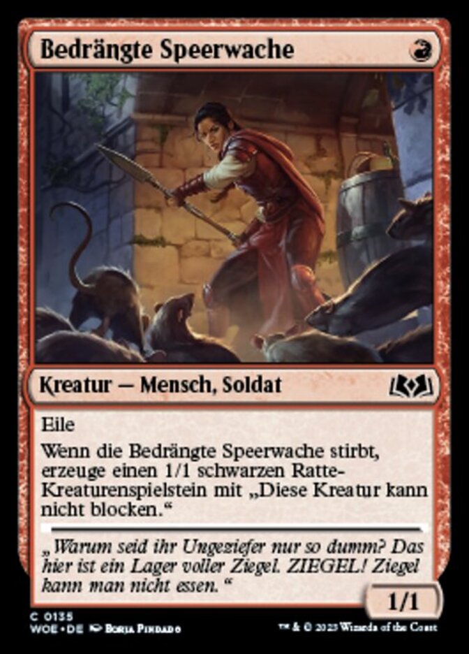 | Rules | Haste When Harried Spearguard dies, create a 1/1 black Rat creature token with "This creature can't block." |