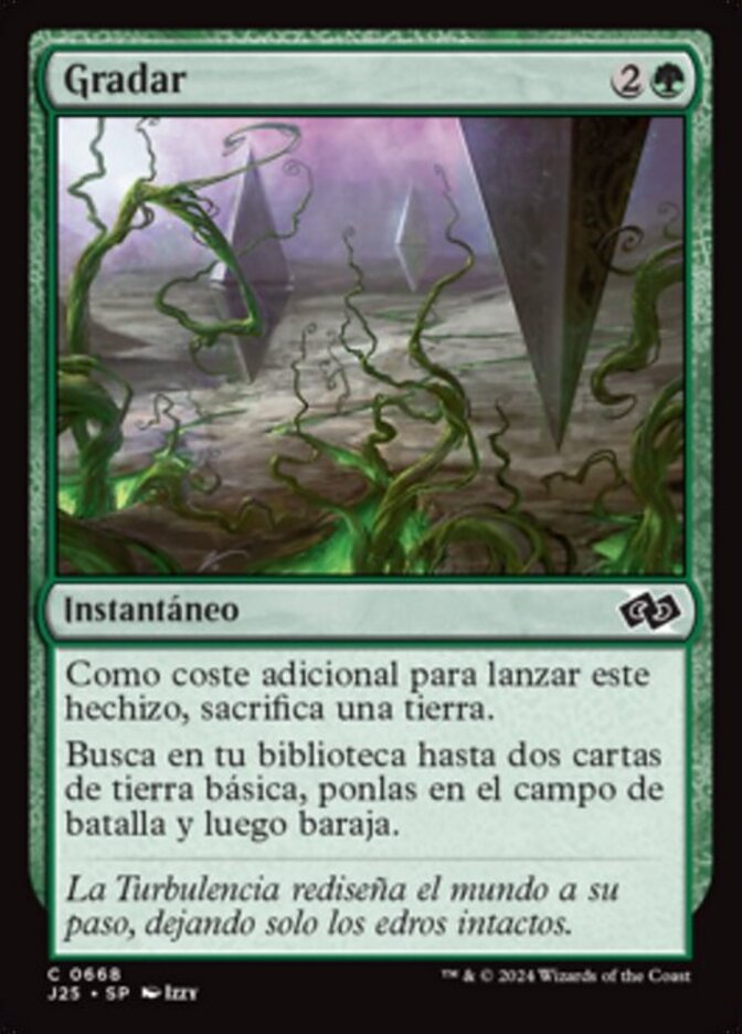 | Rules | As an additional cost to cast this spell, sacrifice a land. Search your library for up to two basic land cards, put them onto the battlefield, then shuffle. |