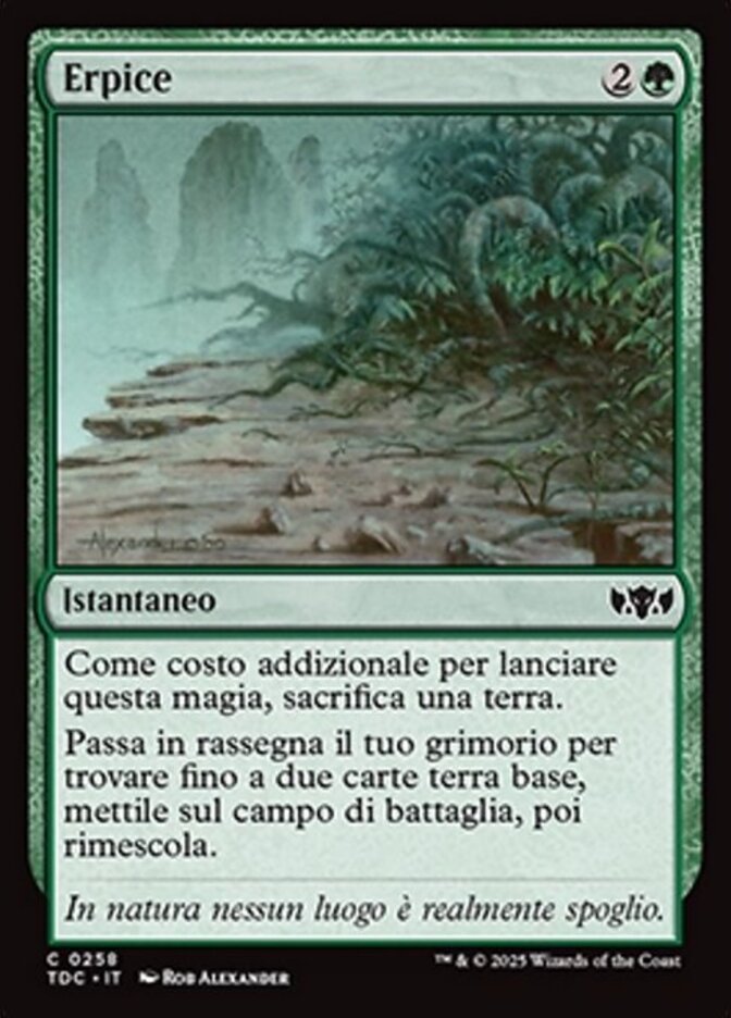 | Rules | As an additional cost to cast this spell, sacrifice a land. Search your library for up to two basic land cards, put them onto the battlefield, then shuffle. |
