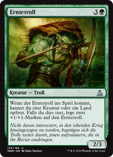 | Rules | When Harvester Troll enters the battlefield, you may sacrifice a creature or land. If you do, put two +1/+1 counters on Harvester Troll. |