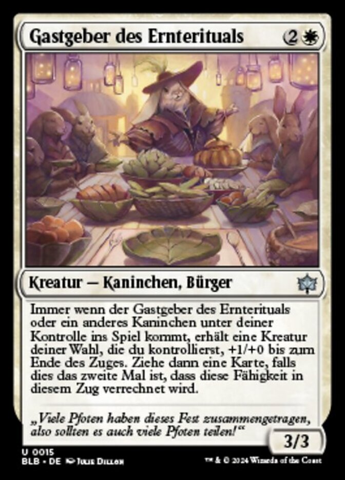 | Rules | Whenever Harvestrite Host or another Rabbit you control enters, target creature you control gets +1/+0 until end of turn. Then draw a card if this is the second time this ability has resolved this turn. |