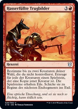 | Rules | Choose up to two target creatures you don't control. For each of those creatures, create a token that's a copy of that creature. Those tokens gain haste. Exile them at the beginning of the next end step. |