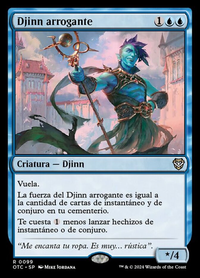 | Rules | Flying Haughty Djinn's power is equal to the number of instant and sorcery cards in your graveyard. Instant and sorcery spells you cast cost less to cast. |