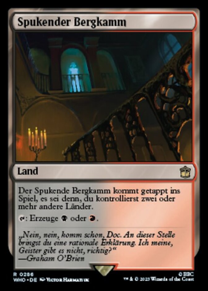 | Rules | Haunted Ridge enters the battlefield tapped unless you control two or more other lands. : Add or . |