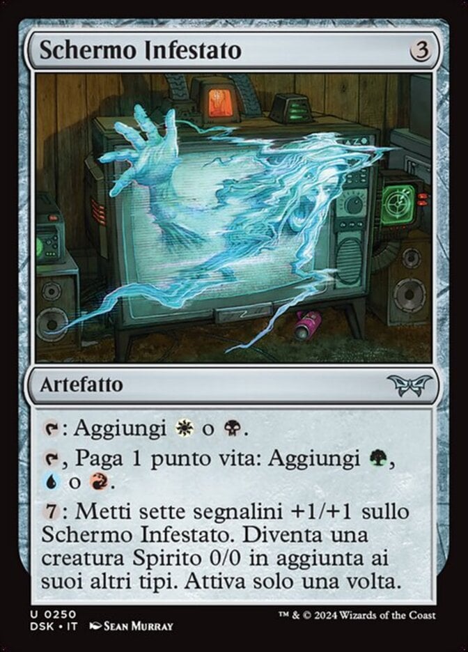 | Rules | : Add or . , Pay 1 life: Add , , or . : Put seven +1/+1 counters on Haunted Screen. It becomes a 0/0 Spirit creature in addition to its other types. Activate only once. |