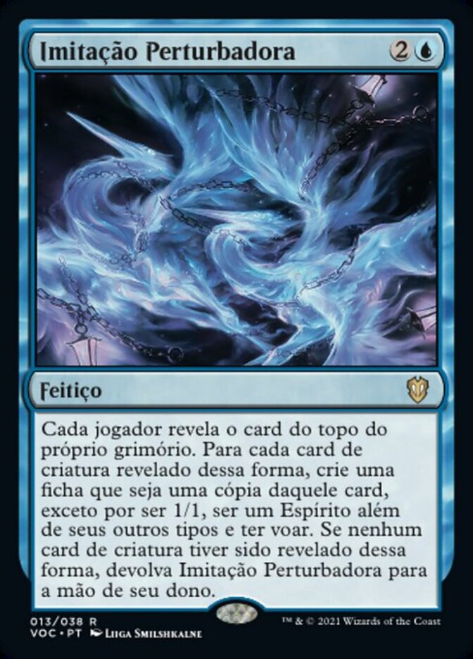 | Rules | Each player reveals the top card of their library. For each creature card revealed this way, create a token that's a copy of that card, except it's 1/1, it's a Spirit in addition to its other types, and it has flying. If no creature cards were revealed this way, return Haunting Imitation to its owner's hand. |