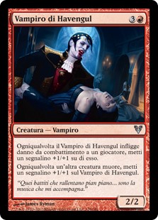 | Rules | Whenever Havengul Vampire deals combat damage to a player, put a +1/+1 counter on it. Whenever another creature dies, put a +1/+1 counter on Havengul Vampire. |