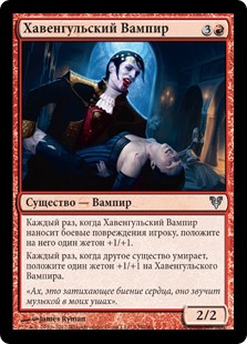 | Rules | Whenever Havengul Vampire deals combat damage to a player, put a +1/+1 counter on it. Whenever another creature dies, put a +1/+1 counter on Havengul Vampire. |