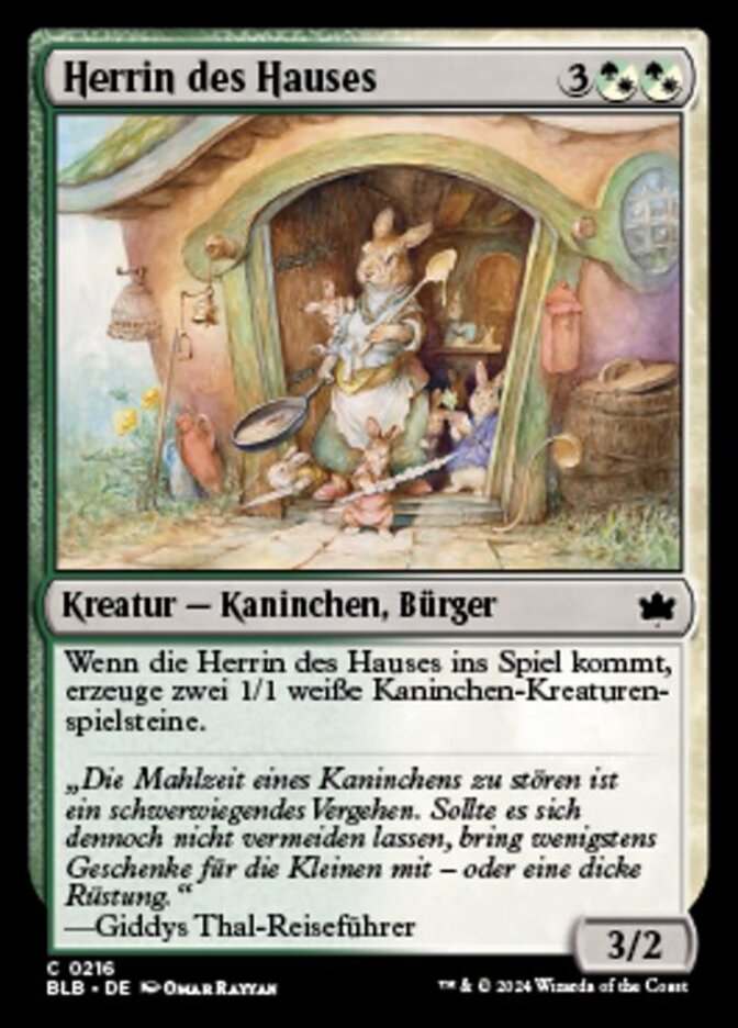 | Rules | When Head of the Homestead enters, create two 1/1 white Rabbit creature tokens. |