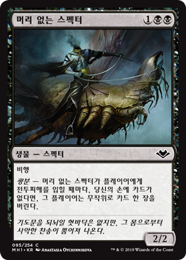 | Rules | Flying Hellbent — Whenever Headless Specter deals combat damage to a player, if you have no cards in hand, that player discards a card at random. |