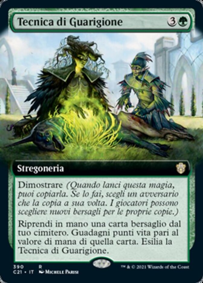 | Rules | Demonstrate (When you cast this spell, you may copy it. If you do, choose an opponent to also copy it. Players may choose new targets for their copies.) Return target card from your graveyard to your hand. You gain life equal to that card's mana value. Exile Healing Technique. |
