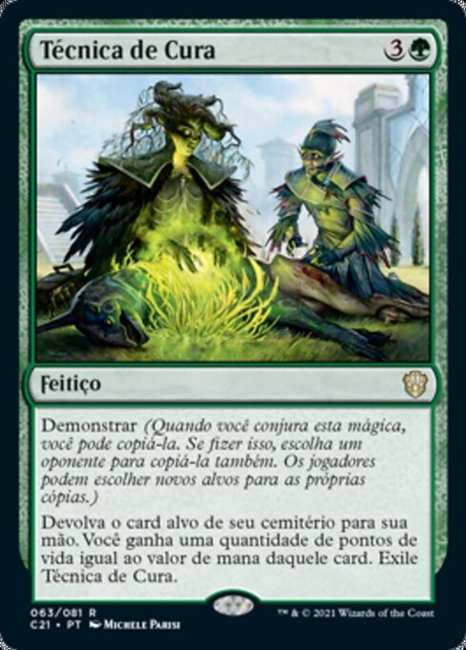 | Rules | Demonstrate (When you cast this spell, you may copy it. If you do, choose an opponent to also copy it. Players may choose new targets for their copies.) Return target card from your graveyard to your hand. You gain life equal to that card's mana value. Exile Healing Technique. |