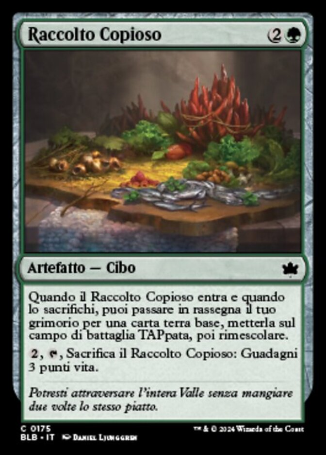 | Rules | When Heaped Harvest enters and when you sacrifice it, you may search your library for a basic land card, put it onto the battlefield tapped, then shuffle. , , Sacrifice Heaped Harvest: You gain 3 life. |