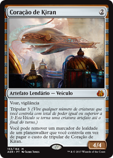 | Rules | Flying, vigilance Crew 3 (Tap any number of creatures you control with total power 3 or more: This Vehicle becomes an artifact creature until end of turn.) You may remove a loyalty counter from a planeswalker you control rather than pay Heart of Kiran's crew cost. |