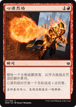 | Rules | As an additional cost to cast this spell, sacrifice a creature or planeswalker. Heartfire deals 4 damage to any target. |