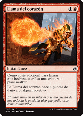 | Rules | As an additional cost to cast this spell, sacrifice a creature or planeswalker. Heartfire deals 4 damage to any target. |