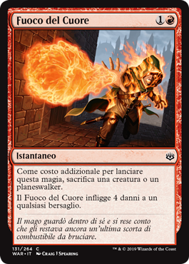 | Rules | As an additional cost to cast this spell, sacrifice a creature or planeswalker. Heartfire deals 4 damage to any target. |