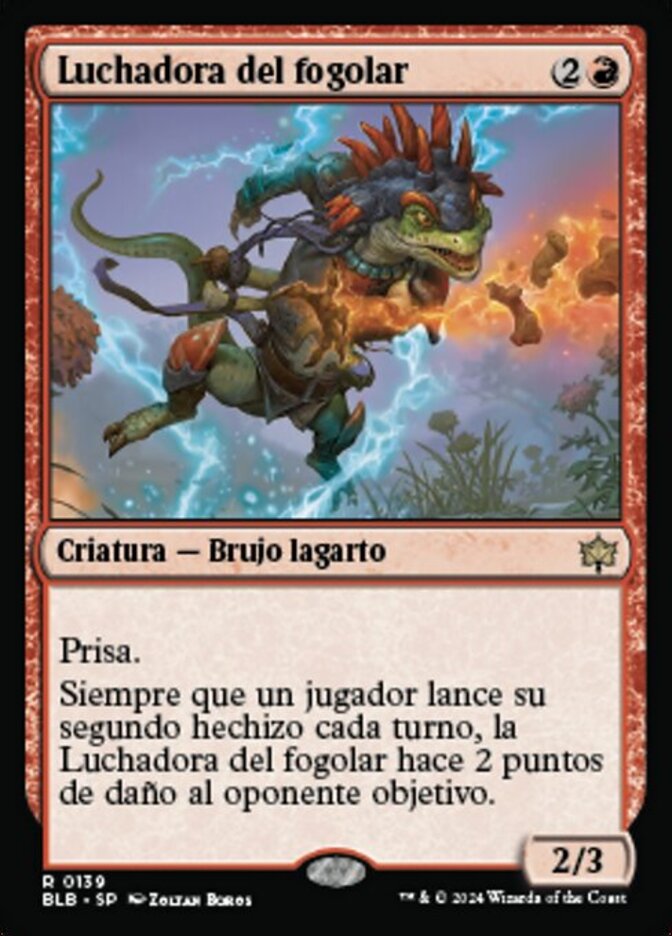 | Rules | Haste Whenever a player casts their second spell each turn, Hearthborn Battler deals 2 damage to target opponent. |