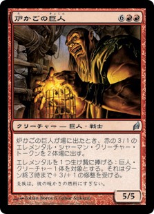 | Rules | When Hearthcage Giant enters the battlefield, create two 3/1 red Elemental Shaman creature tokens. Sacrifice an Elemental: Target Giant creature gets +3/+1 until end of turn. |