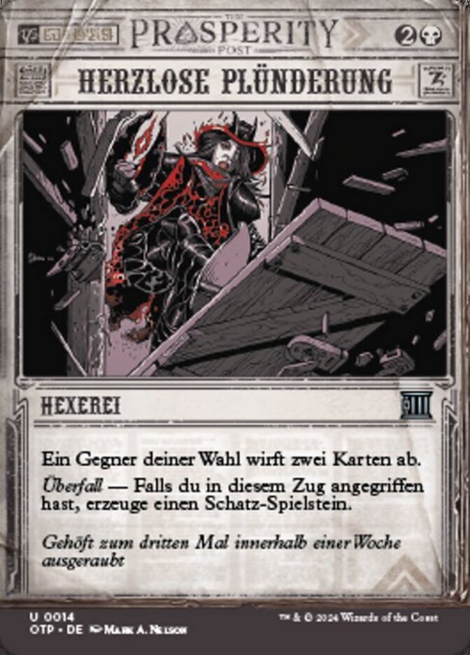 | Rules | Target opponent discards two cards. Raid — If you attacked this turn, create a Treasure token. (It's an artifact with ", Sacrifice this artifact: Add one mana of any color.") |