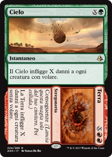 | Rules | Heaven deals X damage to each creature with flying. // Aftermath (Cast this spell only from your graveyard. Then exile it.) Earth deals X damage to each creature without flying. |