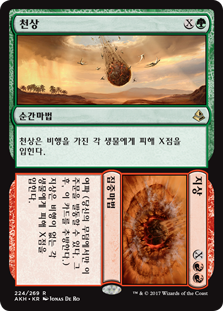| Rules | Heaven deals X damage to each creature with flying. // Aftermath (Cast this spell only from your graveyard. Then exile it.) Earth deals X damage to each creature without flying. |