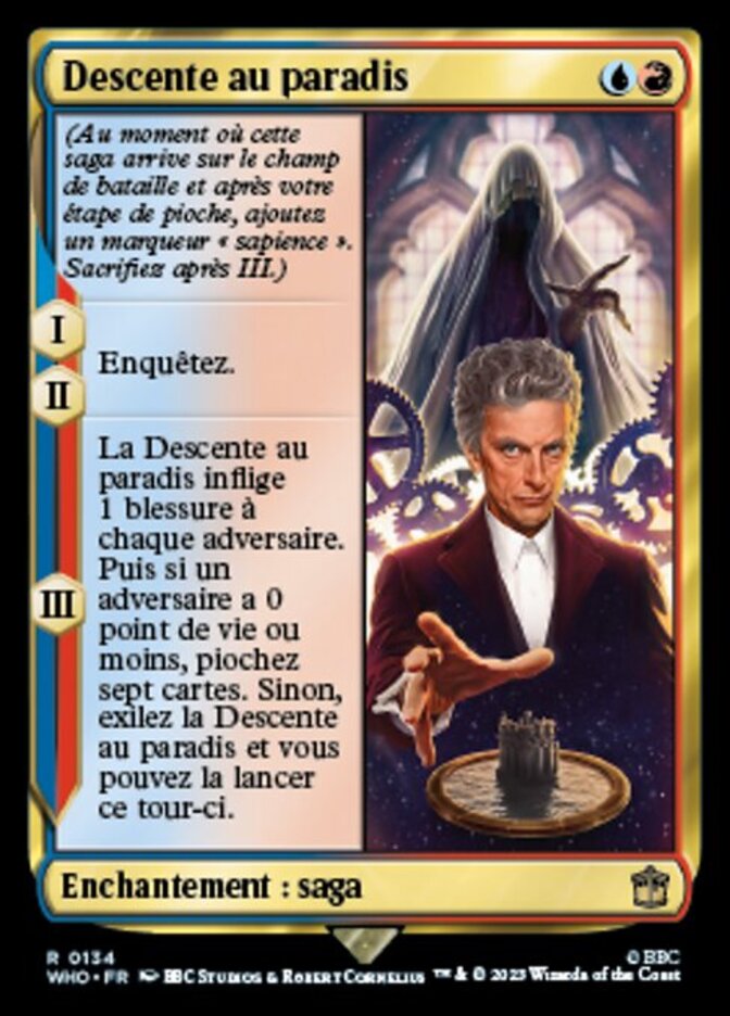 | Rules | (As this Saga enters and after your draw step, add a lore counter. Sacrifice after III.) I, II — Investigate. III — Heaven Sent deals 1 damage to each opponent. Then if an opponent has 0 or less life, draw seven cards. Otherwise, exile Heaven Sent and you may cast it this turn. |