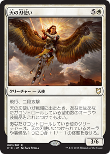 | Rules | Flying, double strike When Heavenly Blademaster enters the battlefield, you may attach any number of Auras and Equipment you control to it. Other creatures you control get +1/+1 for each Aura and Equipment attached to Heavenly Blademaster. |