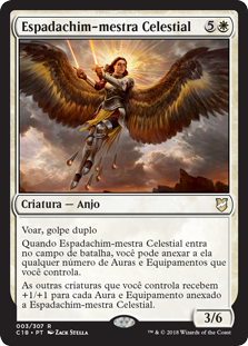When Heavenly Blademaster enters the battlefield, you may attach any number of Auras and Equipment you control to it.