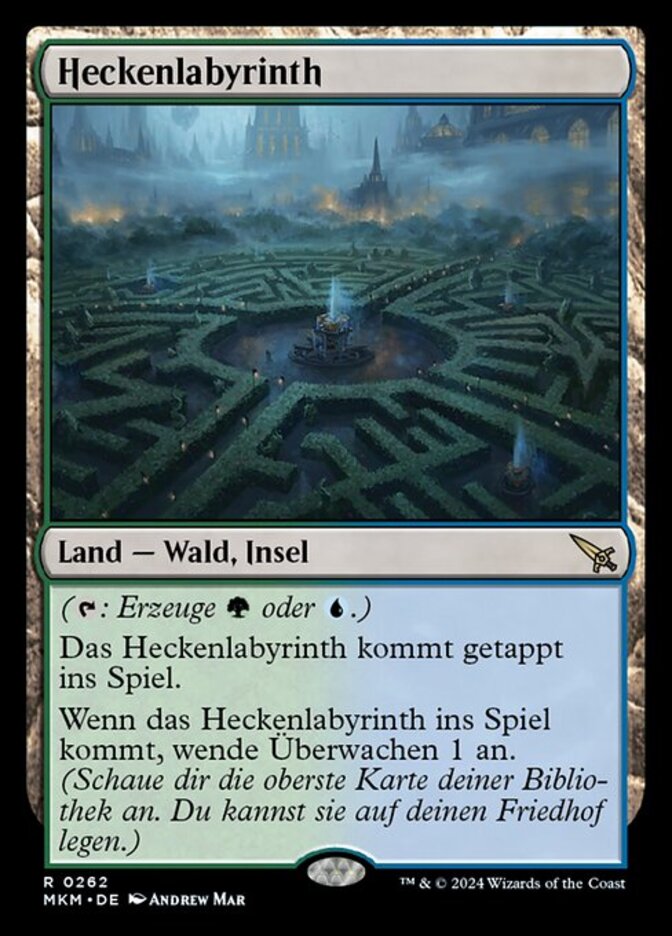 | Rules | (: Add or .) Hedge Maze enters the battlefield tapped. When Hedge Maze enters the battlefield, surveil 1. (Look at the top card of your library. You may put it into your graveyard.) |