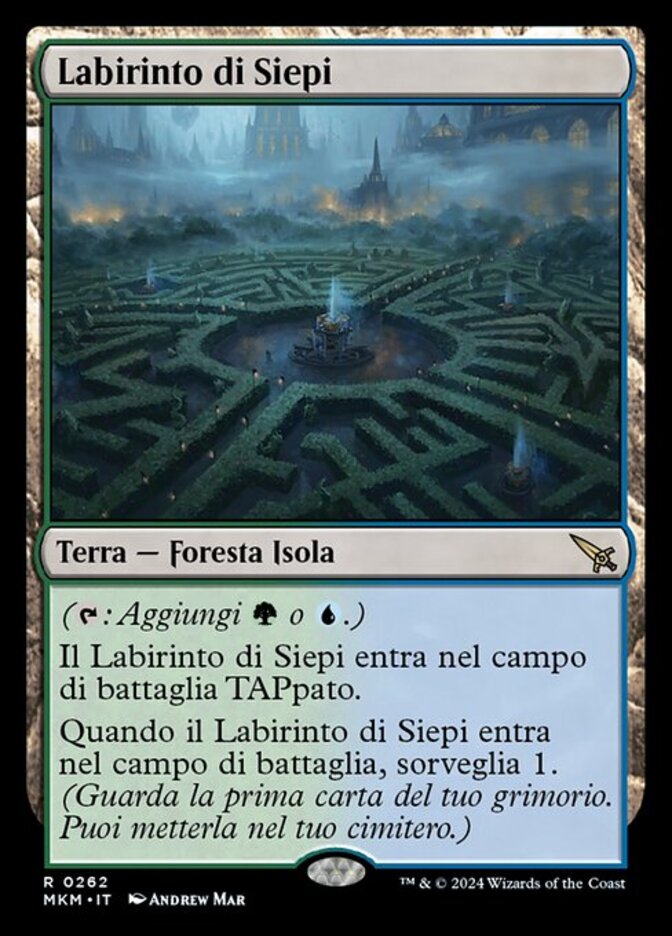 | Rules | (: Add or .) Hedge Maze enters the battlefield tapped. When Hedge Maze enters the battlefield, surveil 1. (Look at the top card of your library. You may put it into your graveyard.) |