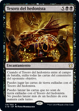 | Rules | When Hedonist's Trove enters the battlefield, exile target opponent's graveyard. You may play lands from among cards exiled with Hedonist's Trove. You may cast spells from among cards exiled with Hedonist's Trove. You can't cast more than one spell this way each turn. |